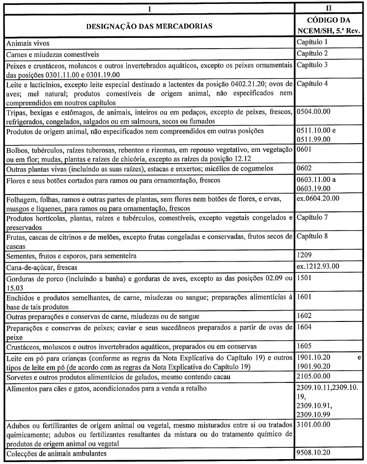 ANEXO III — Tabela de mercadorias sujeitas a controlo sanitário e fitossanitário