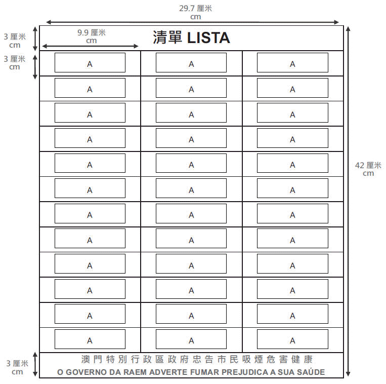3. 煙草製品的側面圖片須載於清單正面的範圍A。