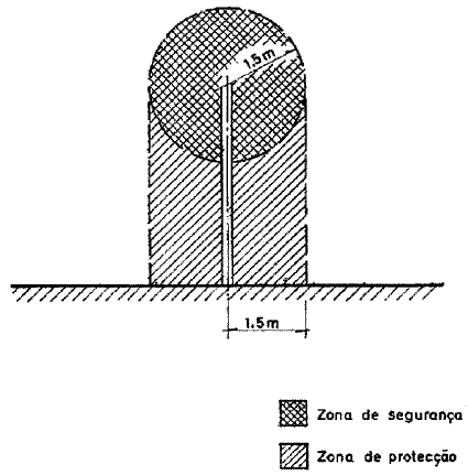 2. A zona de protecção do topo do respirador corresponde ao interior do cilindro vertical, com a base inferior no nível do solo, com um raio de 1,5 m e com o eixo passando pelo centro do topo do respirador, conforme a figura que constitui o anexo II.
