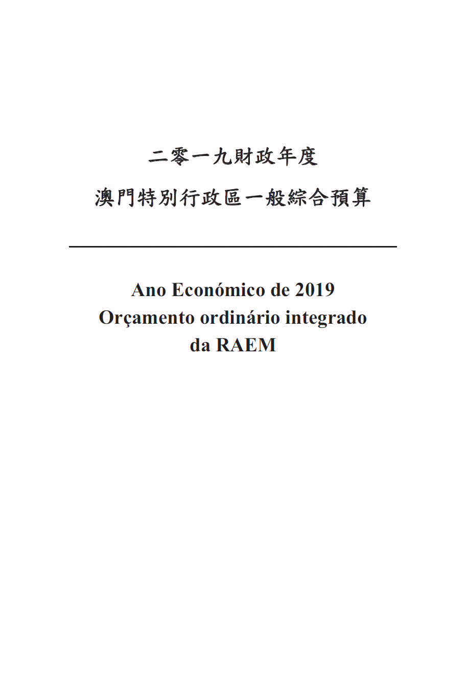 一、二零一九年財政年度澳門特別行政區一般綜合預算的收入總額為$122,385,188,000.00(澳門幣壹仟貳佰貳拾叁億捌仟伍佰壹拾捌萬捌仟元)。