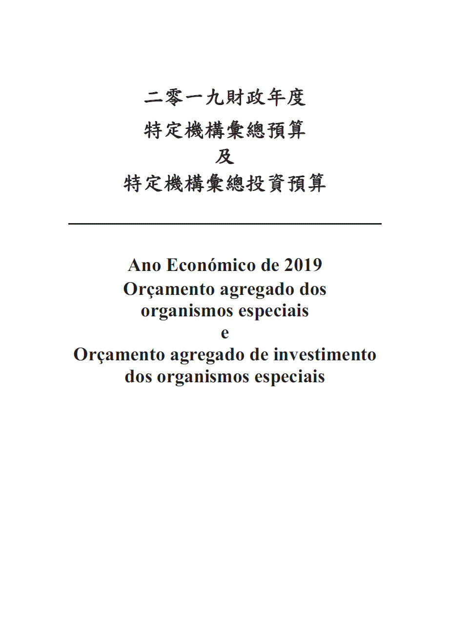 二、二零一九年財政年度特定機構彙總預算的開支總額為$14,831,223,100.00(澳門幣壹佰肆拾捌億叁仟壹佰貳拾貳萬叁仟壹佰元)。