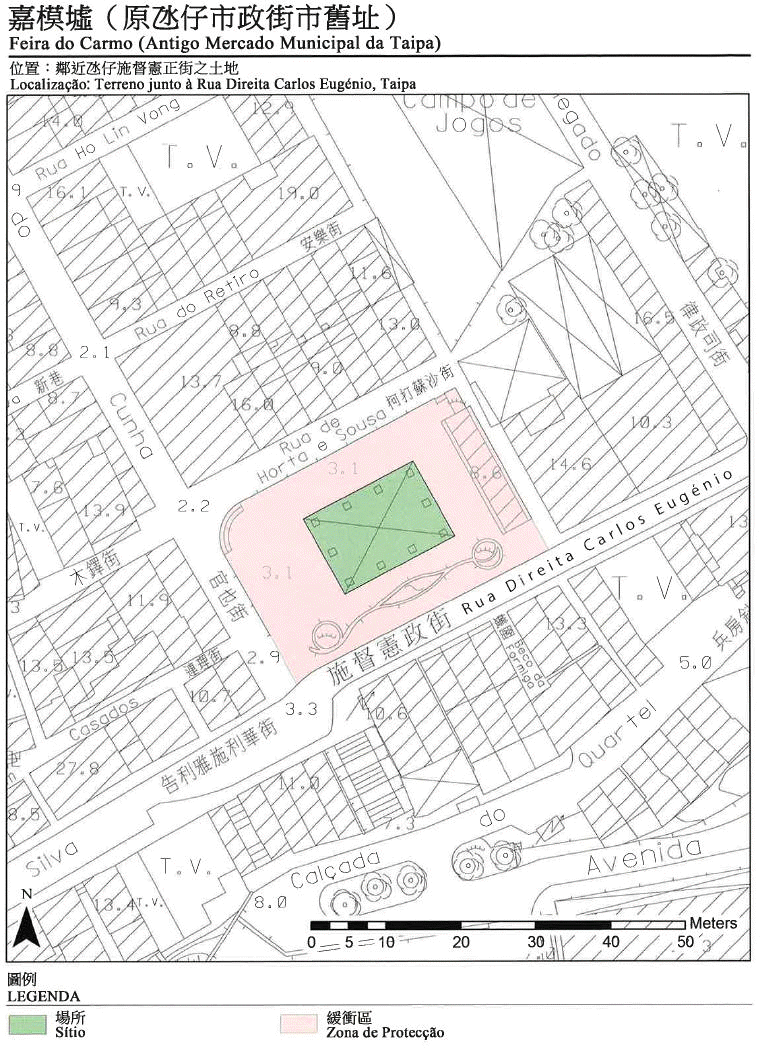 3) Feira do Carmo (Antigo Mercado Municipal da Taipa), localizada no terreno junto à Rua Direita Carlos Eugénio, na Taipa, constante do anexo IX, com o código ST002.