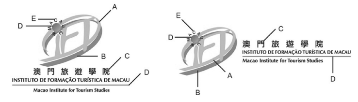 葡文及英文:“INSTITUTO DE FORMAÇÃO TURÍSTICA DE MACAU”及“Macao Institute for Tourism Studies”採用“Optima”字體。