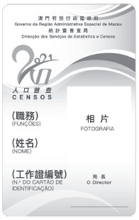 一、二零二一人口普查人員在執行收集資料職務時,應佩戴統計暨普查局發出的工作證。