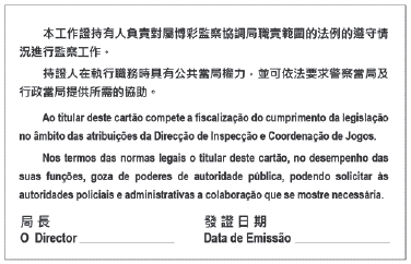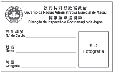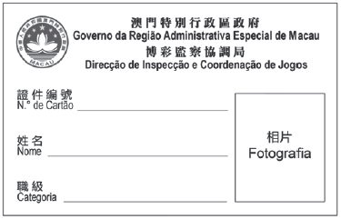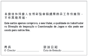 二、式樣一證件供博彩監察協調局執行監察職務的工作人員使用,而式樣二證件則供其餘博彩監察協調局的工作人員使用。