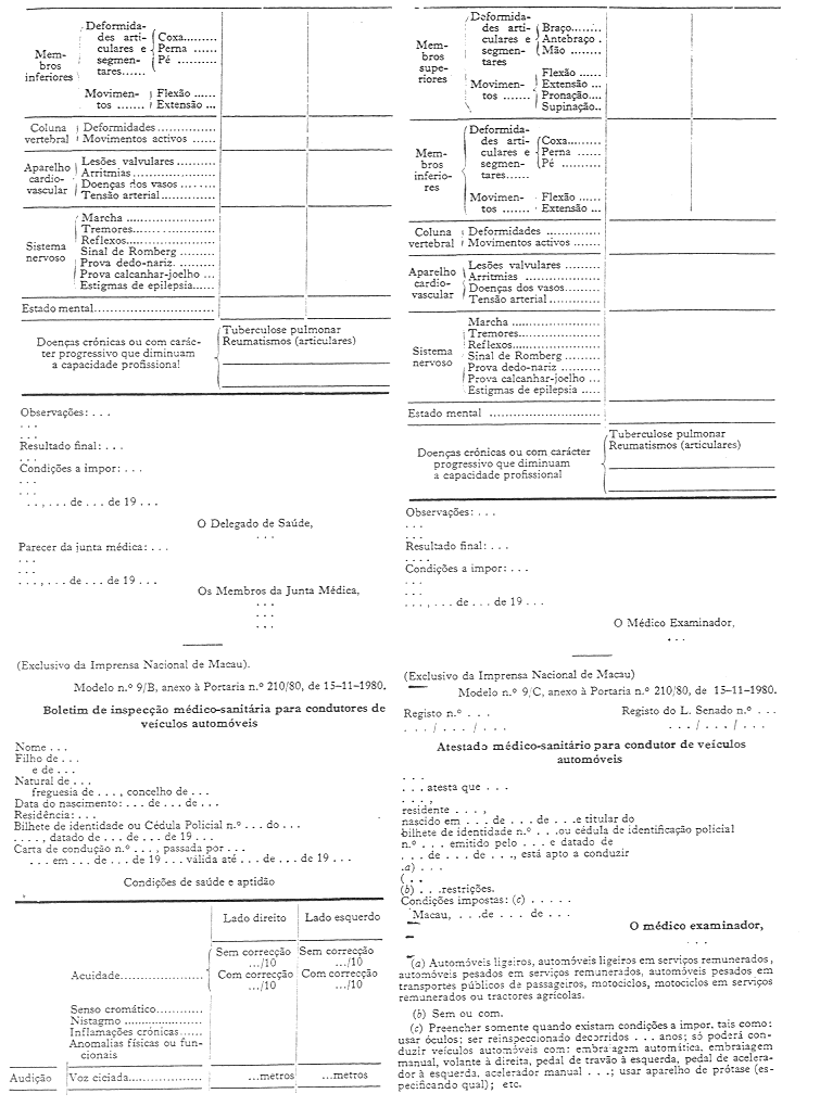 § 1.º Nos atestados, modelo n.º 9-C anexo, a enviar ao Leal Senado, será declarado, consoante os casos, que o candidato ou o condutor está apto a conduzir automóveis ligeiros, automóveis pesados, motociclos ou tractores agrícolas.