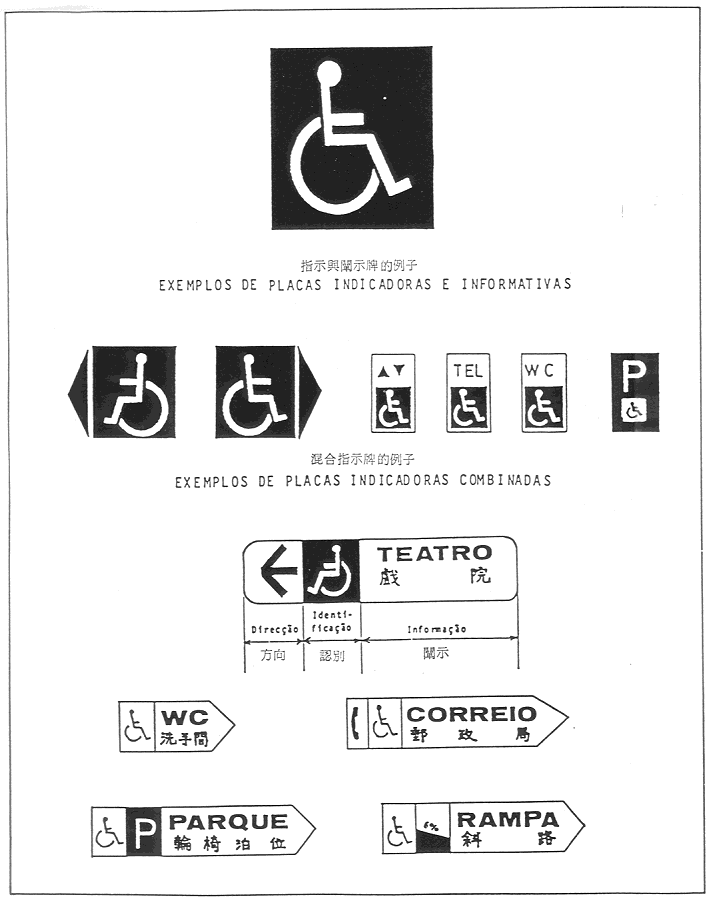 一、可到達的標誌係由以藍色為底,及有一坐輪椅人士的白面圖像的一個牌所構成。