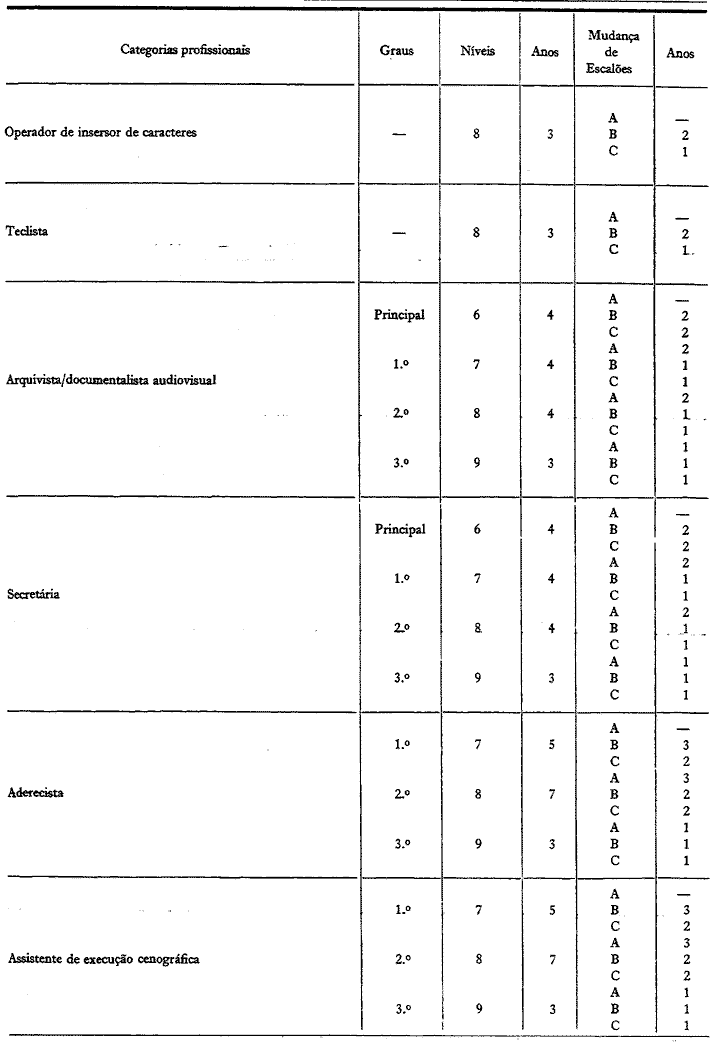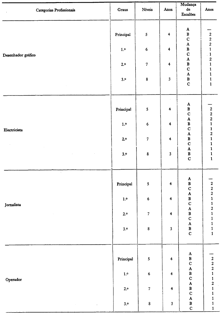 3. A progressão horizontal na carreira efectua-se sempre por transição para os escalões imediatamente superiores constantes da tabela de remunerações, desde que o trabalhador reúna convenientes informações profissionais e condições de antiguidade.