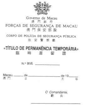 • TÍTULO DE PERMANÊNCIA TEMPORÁRIA - CORPO DE POLÍCIA DE SEGURANÇA PÚBLICA - DIRECÇÃO DOS SERVIÇOS DE IDENTIFICAÇÃO -
