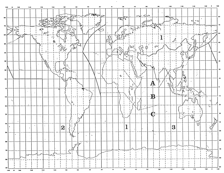 Mapa indicando os limites das zonas A, B e C nas Regiões 1 e 3
