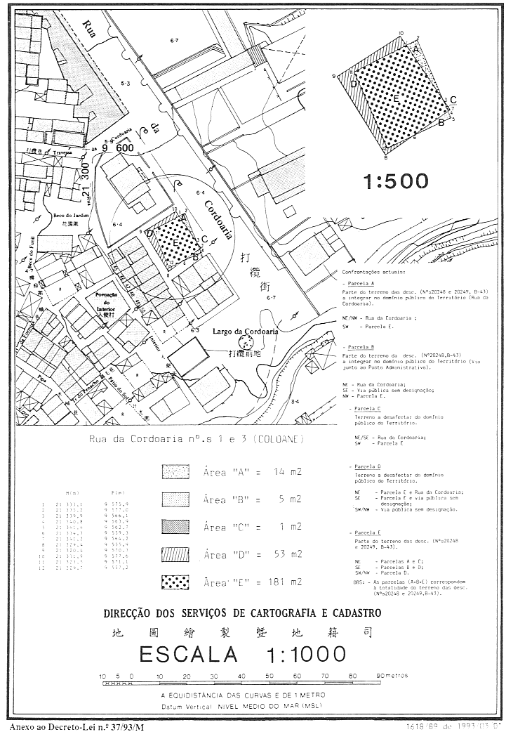 獨一條——根據七月五日第6/80/M號法律第四條規定,解除面積分別為一平方米及五十三平方米兩處地段之公產性質,該兩處地段在地圖繪製暨地籍司於一九九三年三月一日發出之第1618/89號地籍圖內分別以字母“C”及“D”標明,而該地籍圖附於本法規且成為其組成部分。