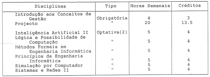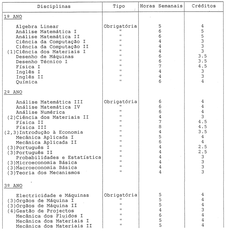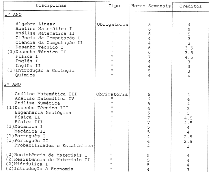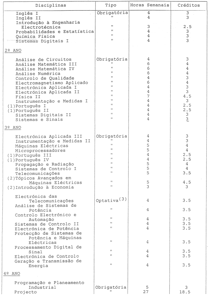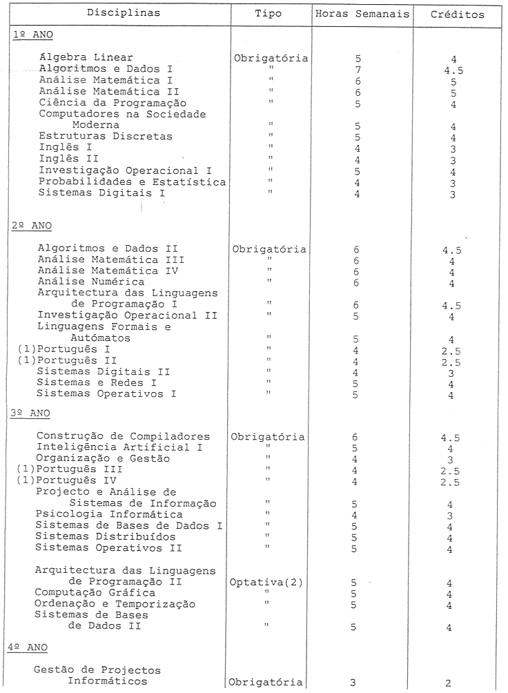 (1) Optativas a partir de 1993/94. A disciplina de Português III pode ser substituída por uma da área das Ciências Sociais e Humanas.