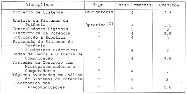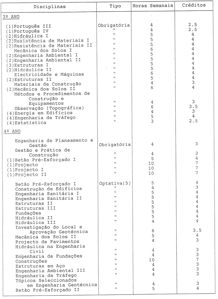 (4) Oferecidas no 3.º ano apenas em 1991/92 (Energia em Edifícios) cem 1992/93 (Engenharia de Tráfego e Estatística).