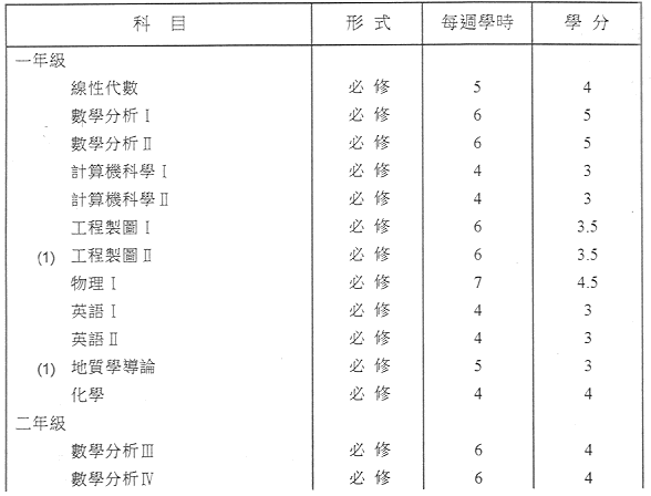 - ——熱力學(一九九二/一九九三學年五個學分)由熱力學I及II代替。