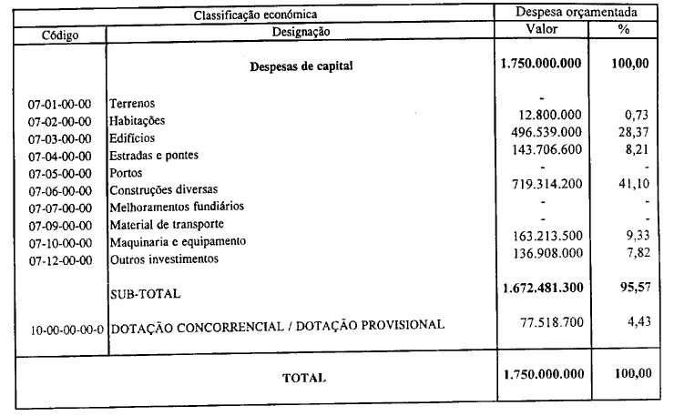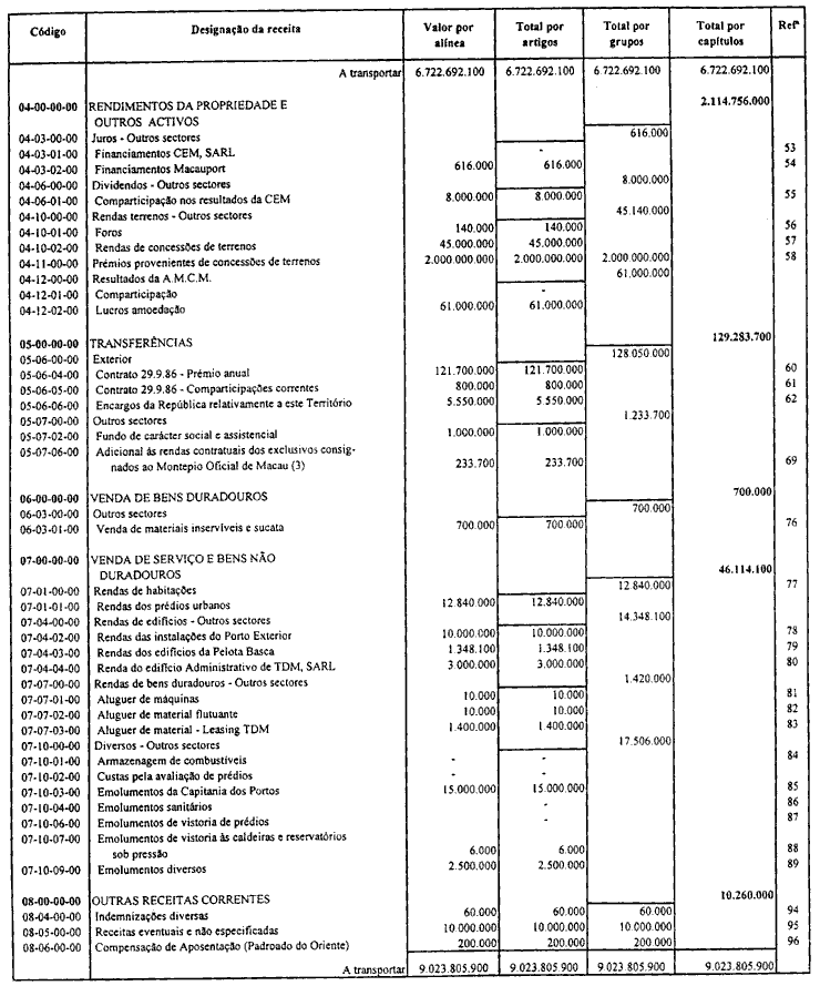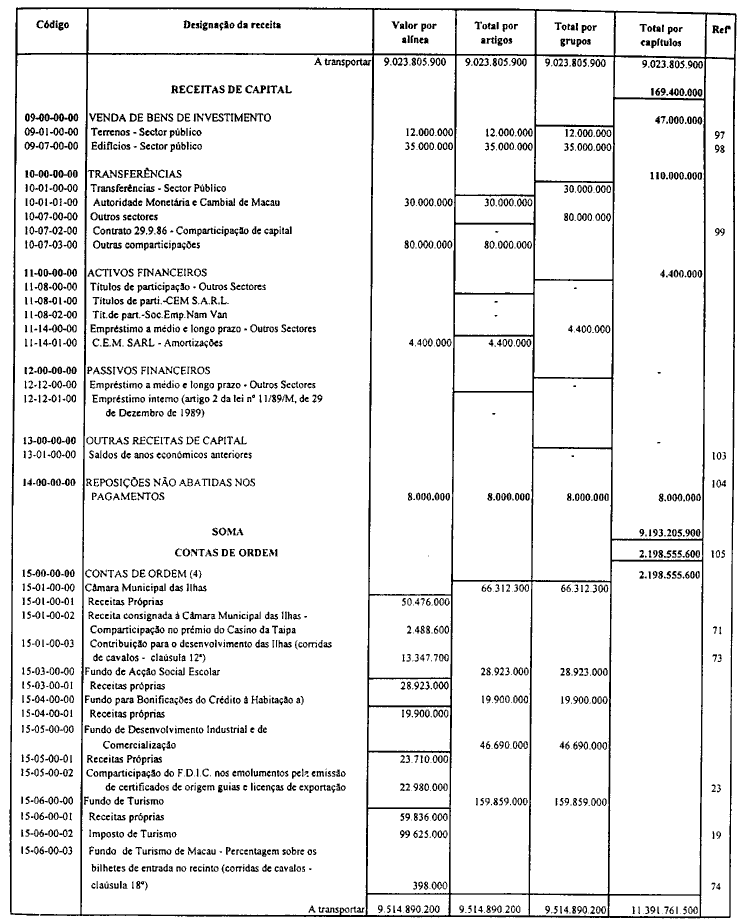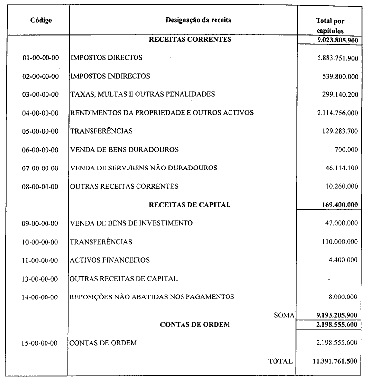 ORÇAMENTO DA RECEITA PARA O ANO ECONÓMICO DE 1995