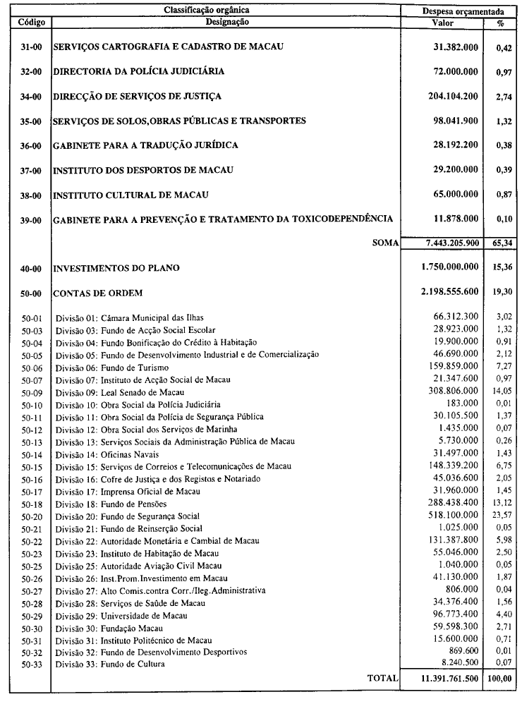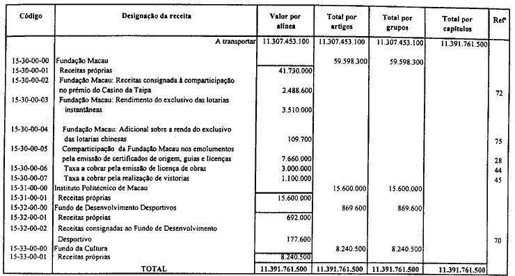 | 15. Imprensa Oficial de Macau | 31 960 000,00 |