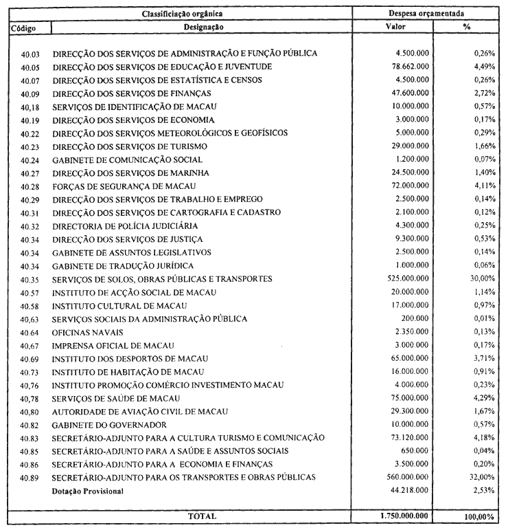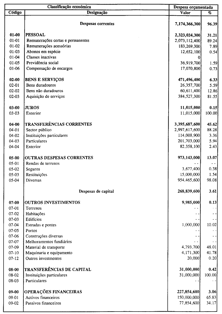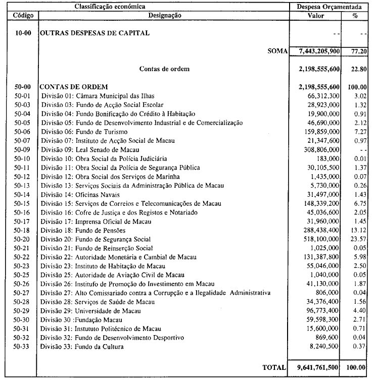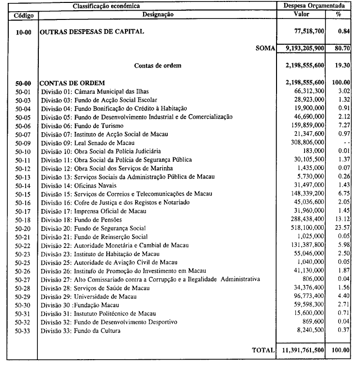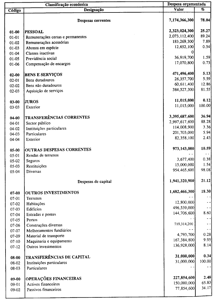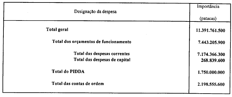O valor global das despesas orçamentais relativas ao ano económico de 1995 é fixado em 9 193 205 900,00 patacas.