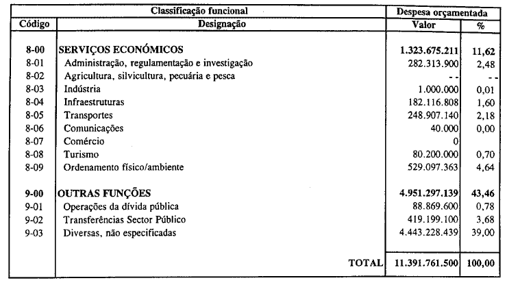 RESUMO DAS DESPESAS DE FUNCIONAMENTO E PRIVATIVAS, SEGUNDO A CLASSIFICAÇÃO ECONÓMICA