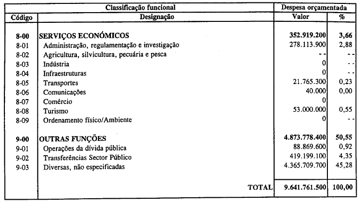 RESUMO DAS DESPESAS TOTAIS, SEGUNDO A CLASSIFICAÇÃO ECONÓMICA