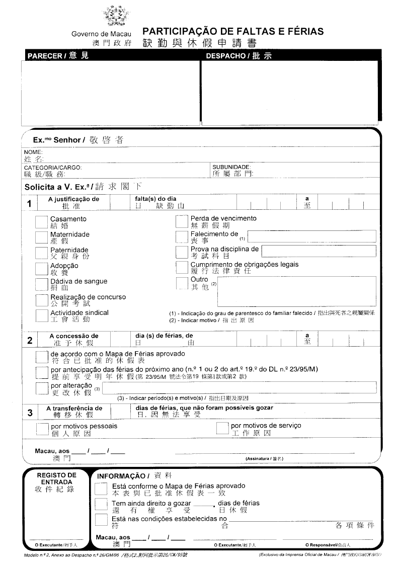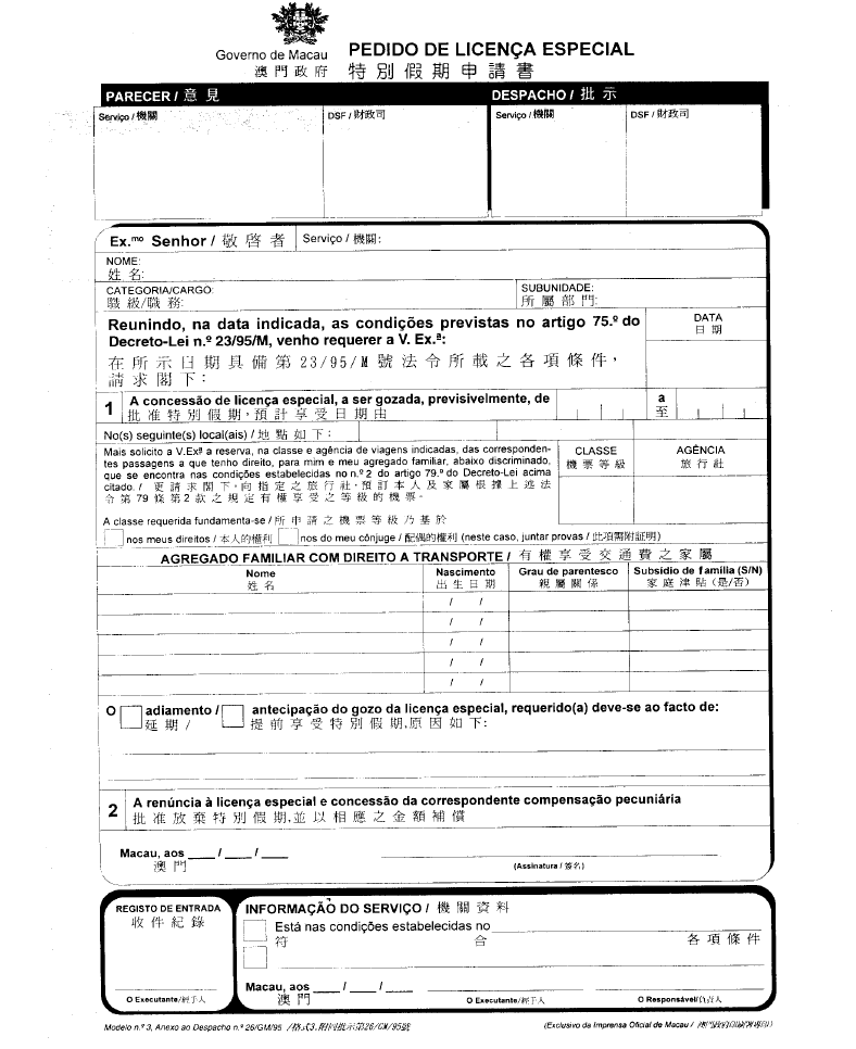 按照六月一日第23/95/M號法令第八十三條規定,總督具有權限核准該法規所述印件之格式;