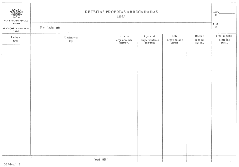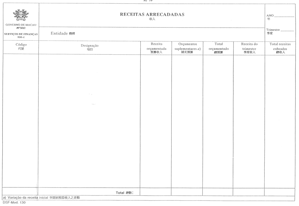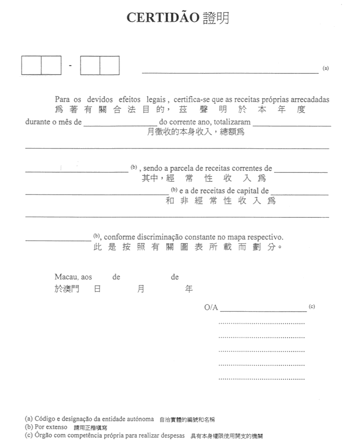 • 第42/GM/94號批示 - 核准財政司為跟進自治實體之帳目而供其使用之帳目表及證書之格式。