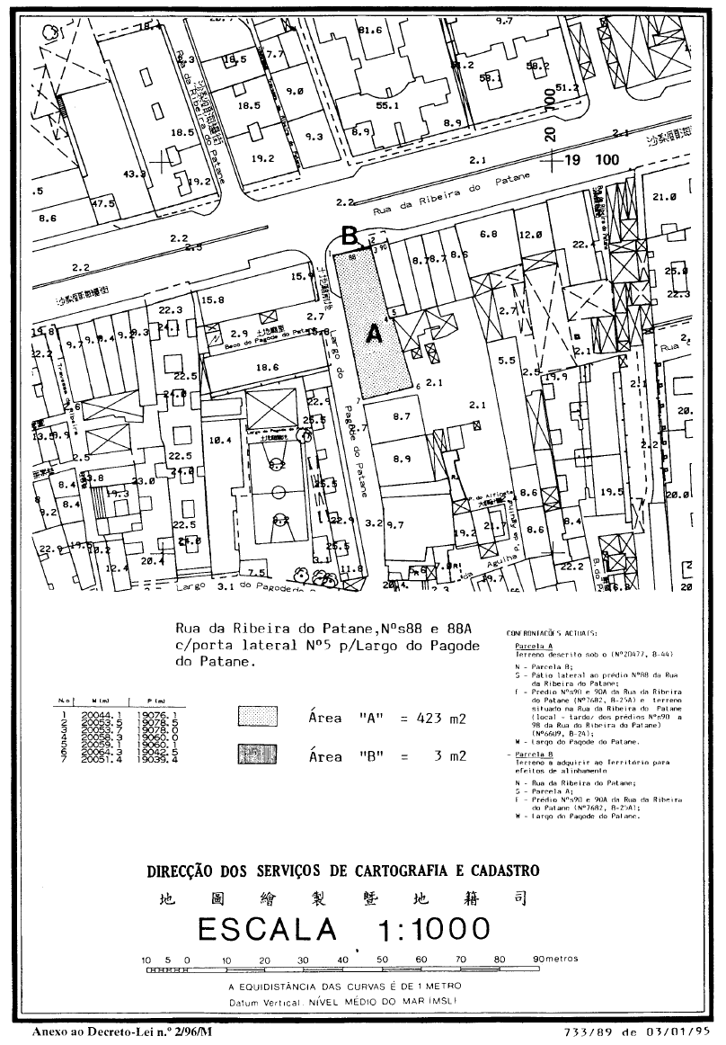 獨一條 根據七月五日第6/80/M號法律第四條之規定,解除總面積為三平方米地段之公產性質,且視作無主土地撥歸為本地區私產。該地段在地圖繪製暨地籍司於一九九五年一月三日發出之第733/89號地籍圖內以字母“B”標明,而該地籍圖附於本法規並成為其組成部分。
