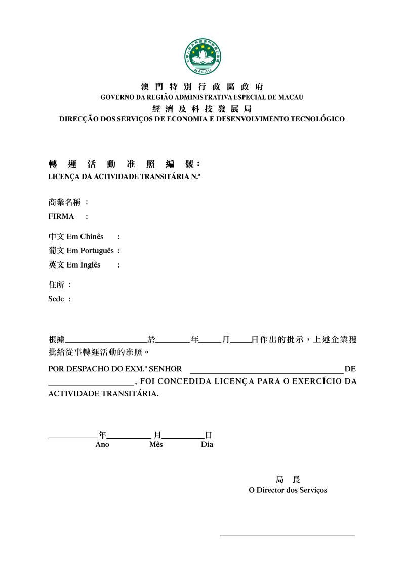 二、轉運企業准照由行政長官以批示批給。*