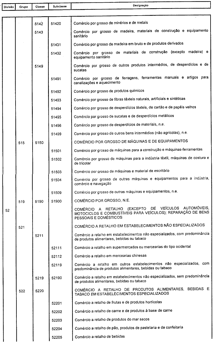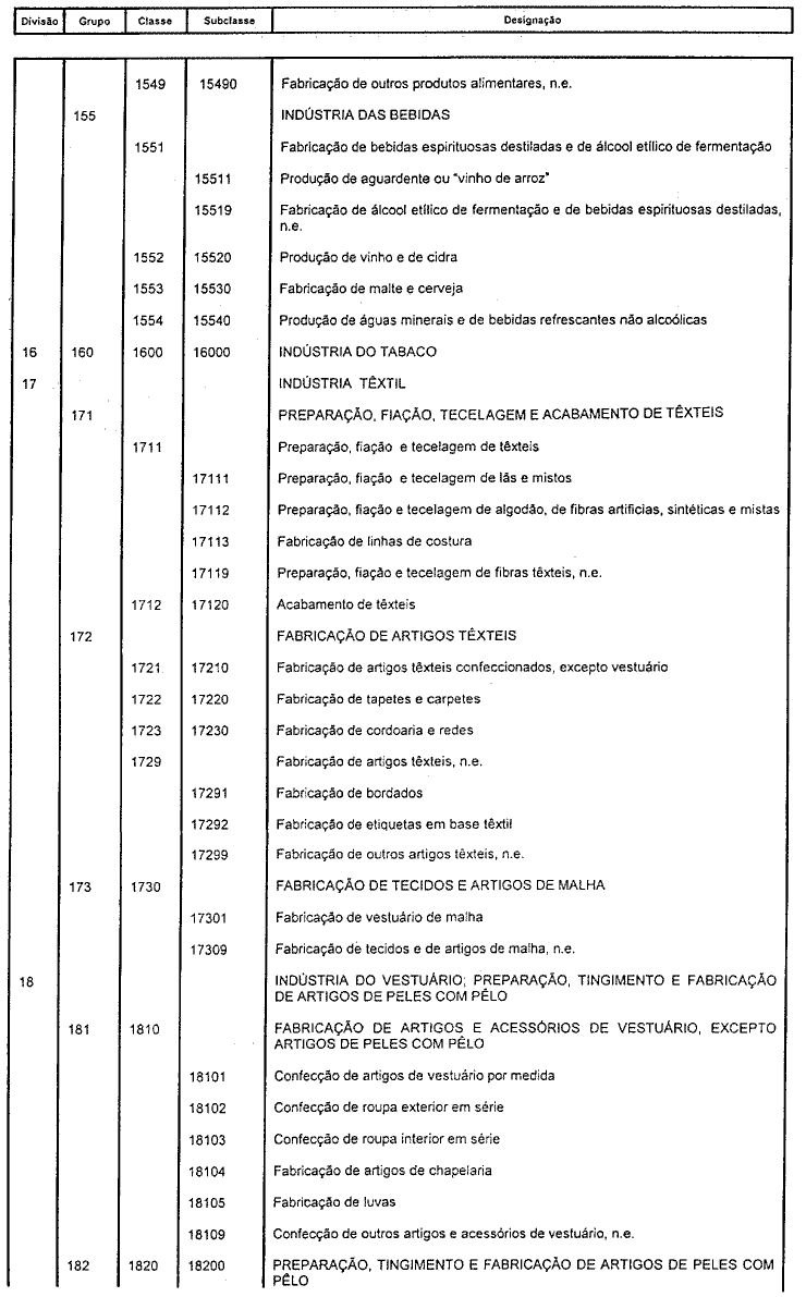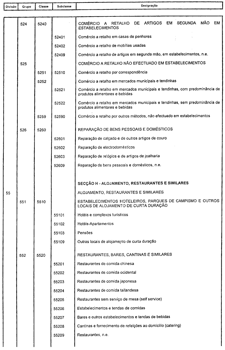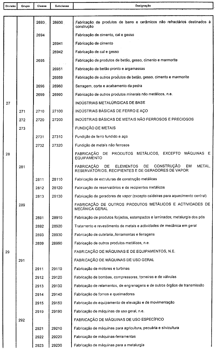 LISTA DE TODOS OS NÍVEIS (SECÇÃO, DIVISÃO, GRUPO, CLASSE E SUBCLASSE)