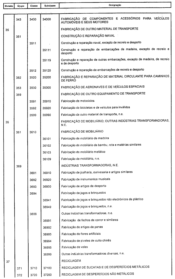 36 INDÚSTRIA DE MOBILIÁRIO; OUTRAS INDÚSTRIAS TRANSFORMADORAS, N.E. D