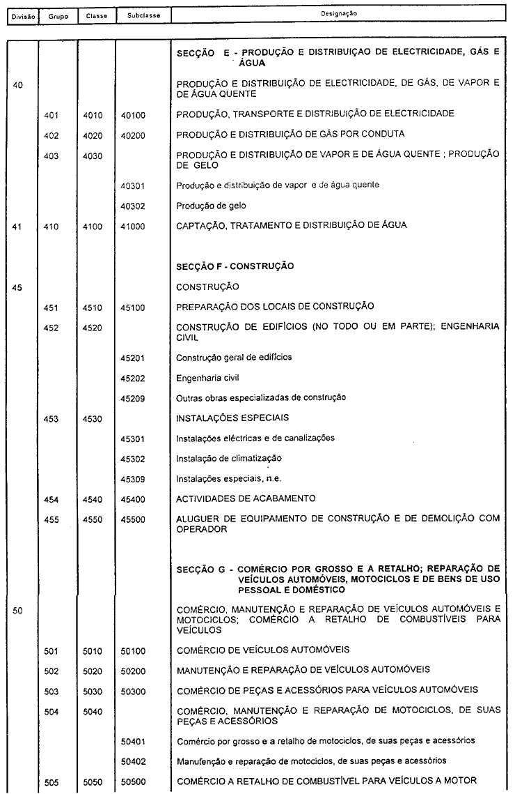 40 PRODUÇÃO DE DISTRIBUIÇÃO DE ELECTRICIDADE; DE GÁS, DE VAPOR E ÁGUA QUENTE E