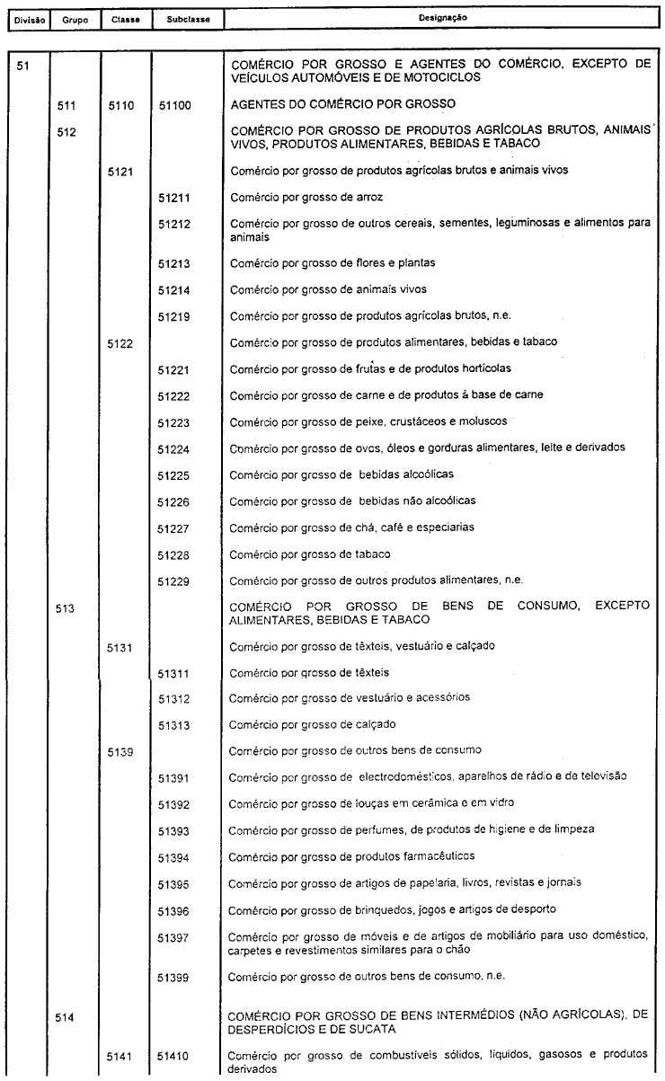 51 COMÉRCIO POR GROSSO E AGENTES DO COMÉRCIO, EXCEPTO DE VEÍCULOS AUTOMÓVEIS E DE MOTOCICLOS  G