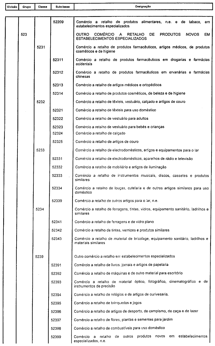 52 COMÉRCIO A RETALHO (EXCEPTO DE VEÍCULOS AUTOMÓVEIS, MOTOCICLOS E COMBUSTÍVEIS PARA VEÍCULOS), REPARAÇÃO DE BENS PESSOAIS E DOMÉSTICOS G