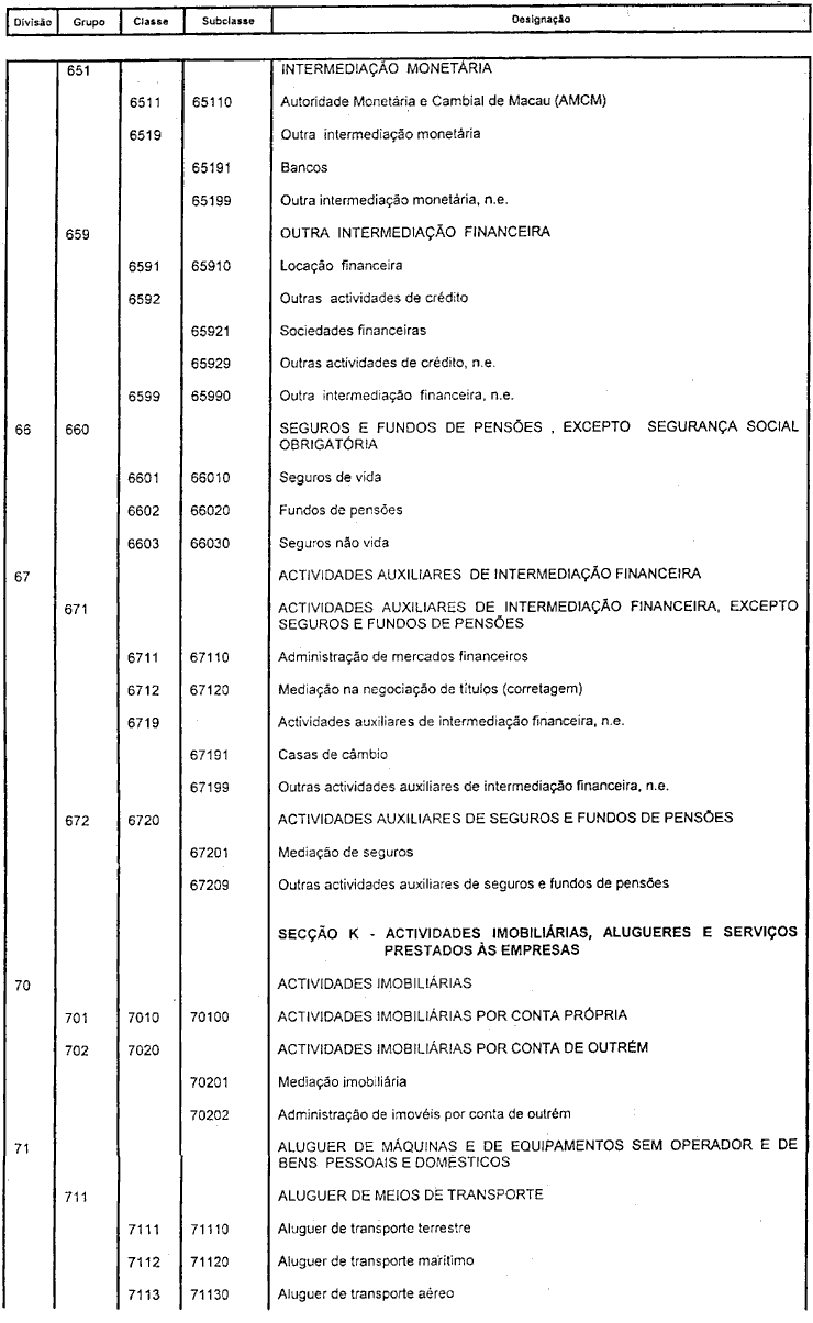 • Portaria n.º 87/88/M - Aprova a Classificação das Actividades de Macau (CAM).