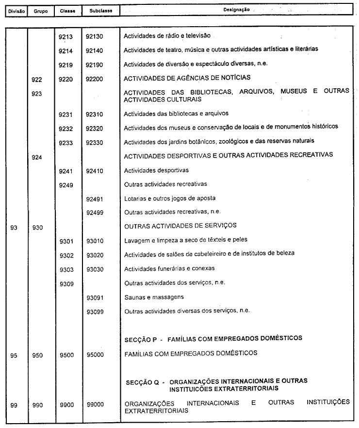 93 OUTRAS ACTIVIDADES DE SERVIÇOS O