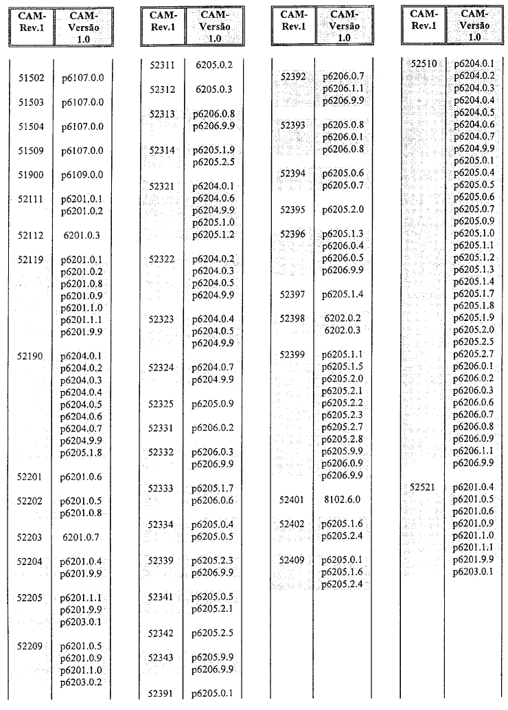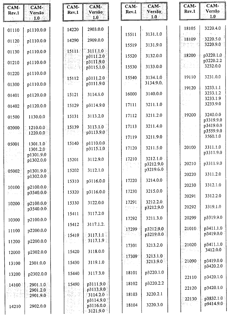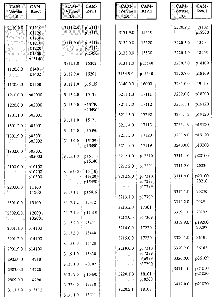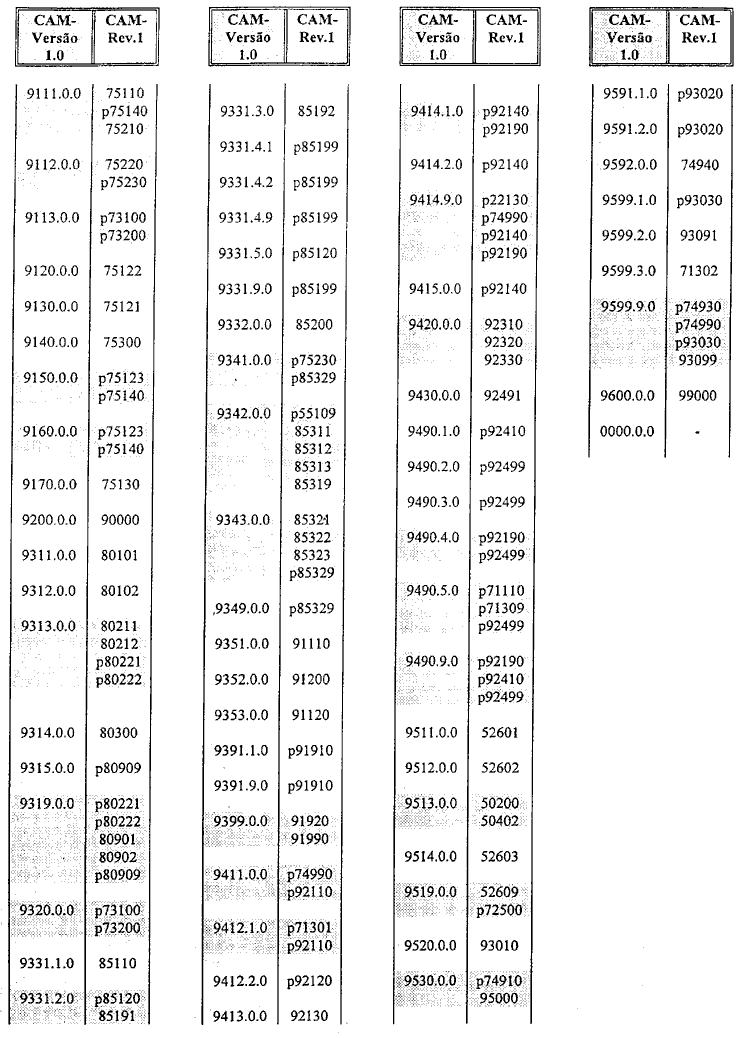 Tabela de Correspondência a Nível Elementar CAM-Rev. 1 CAM-Versão 1.0