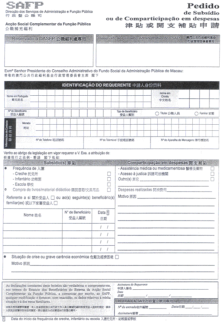 鑑於有需要核准《公職人員補充福利制度之優惠規章》內各項資助申請的印件式樣;