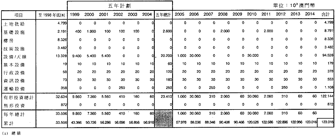 在計劃的其餘期間(二○○五—二○一四年),在基建及設備方面的投資可能高達澳門幣六千五百萬元。