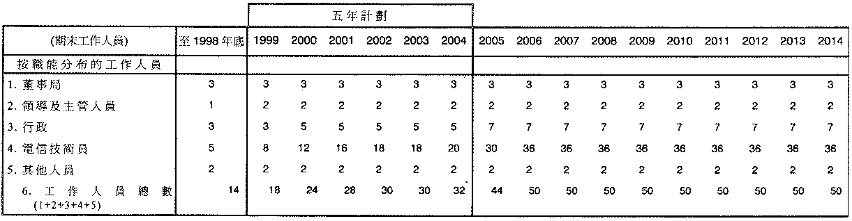 在營運首五年內,將招聘更多電信專業技術員在地球站內擔任電視廣播服務及衛星轉發器管理服務的工作,令工作人員的平均數目增至約32名。