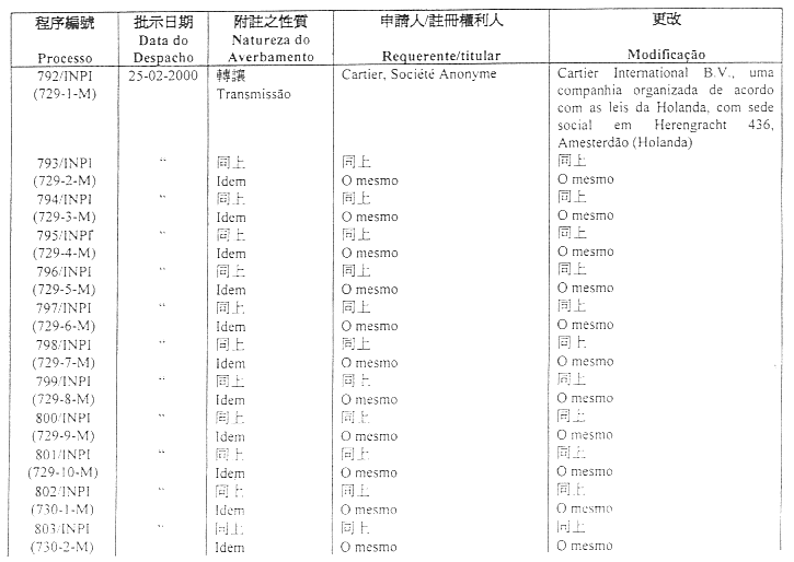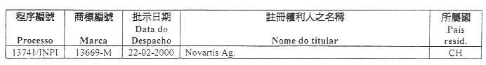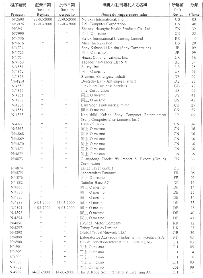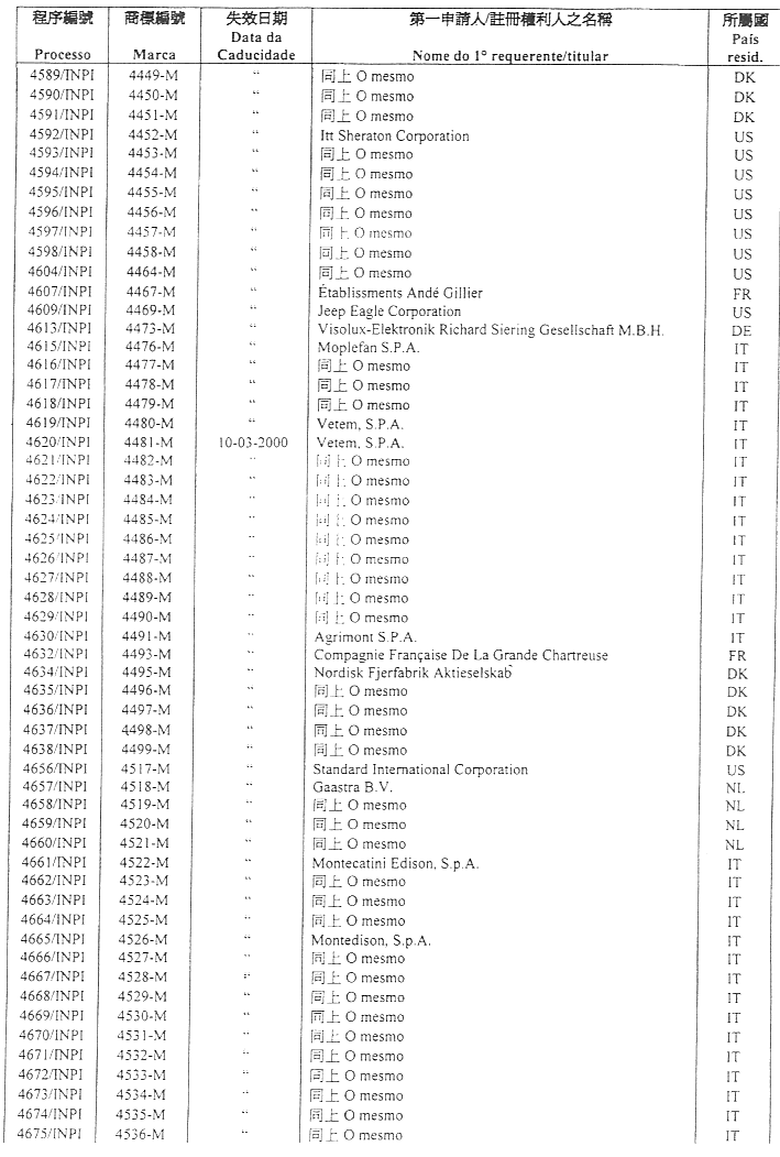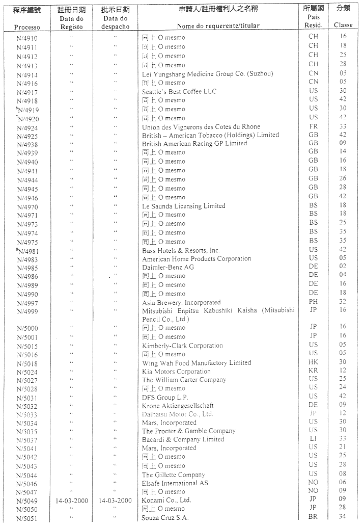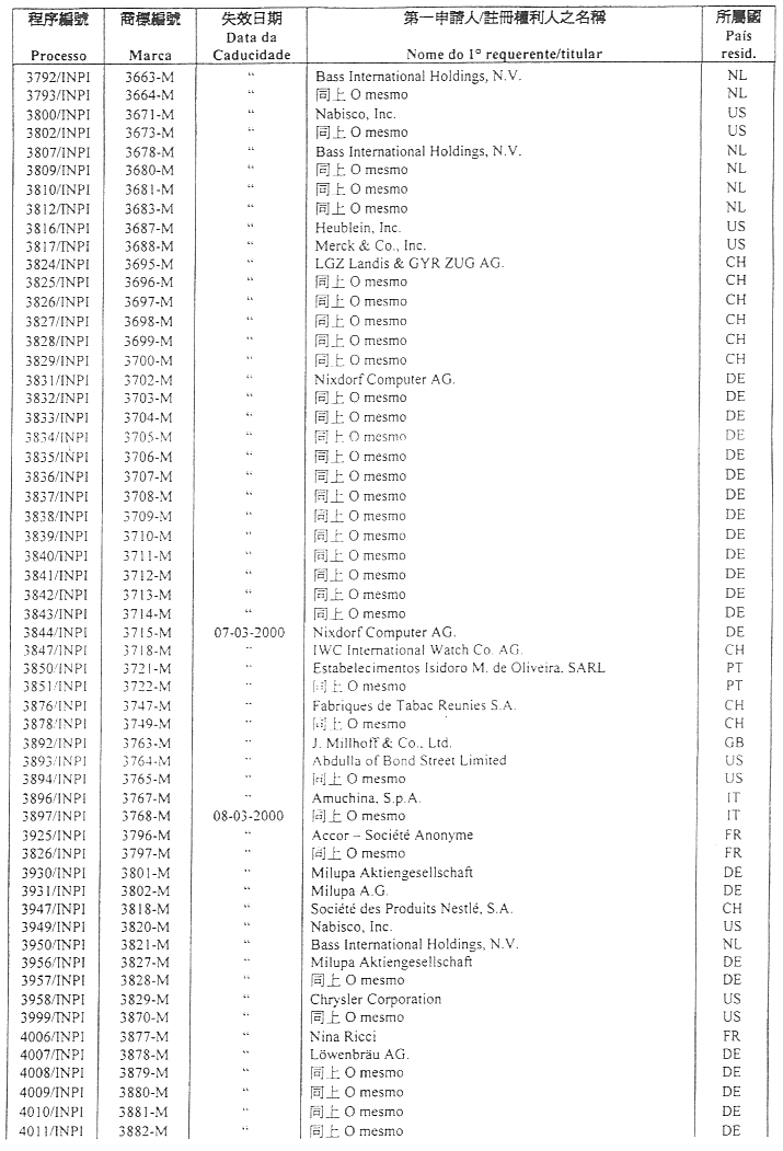 商標編號541-M — 在延伸至澳門的批給表內,因不恰當的原因應視作無效刊登。