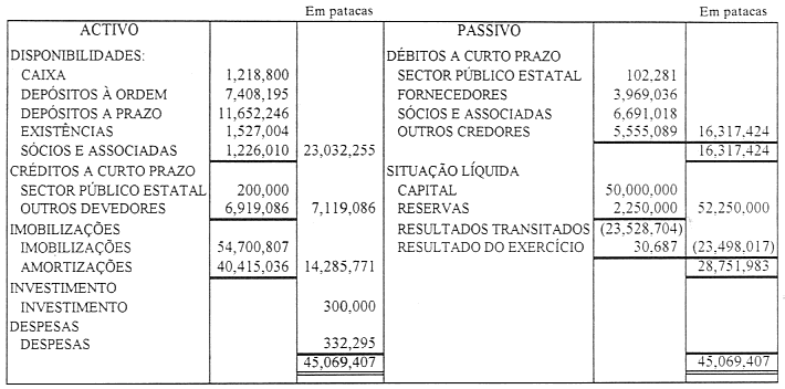 Em termos de exploração, o resultado referente ao exercício findo em 31.12.99, evidenciou uma melhoria significativa comparado com o resultado previsional negativo de MOP 360,613, em virtude da rigorosa e intermitente política adoptada no controlo de custos operacionais. No aspecto administrativo, foi possível que esses custos atingissem o seu nível de optimização, sem contudo afectar o normal funcionamento da exploração, aliado ao facto de a TCM, em 1999, não ter efectuado investimentos de envergadura, originando desta forma que o valor de amortizações e juros de financiamentos tivesse registado uma redução de 3,5% e 30,89%, respectivamente. No que concerne a proveitos, apesar de no exercício findo ter mantido a deflação económica em Macau, agravada ainda por questões de ordem pública que motivaram o decréscimo de utentes, afectando em alguns períodos ou em certos períodos do dia o número de passageiros normalmente transportados, no entanto, em consequência da actualização tarifária a partir de Agosto de 1998, e dos significativos proveitos provenientes do aluguer de viaturas para as actividades relacionadas com a transferência de administração em 1999, e ainda da melhoria registada nos serviços prestados aos utentes, nestas circunstâncias, o resultado apurado no exercício findo não se enquadrava na previsão inicial, a ponto de originar um resultado líquido correspondente a 2% sobre o total de proveitos.