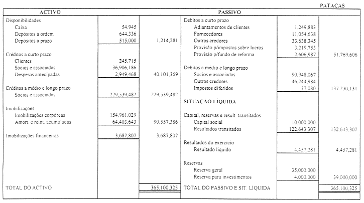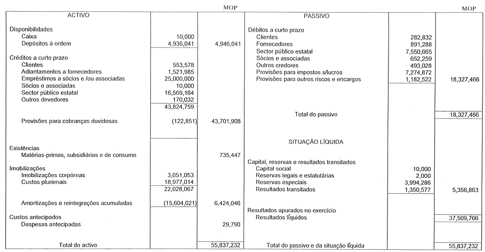 資產負債表(澳門幣)