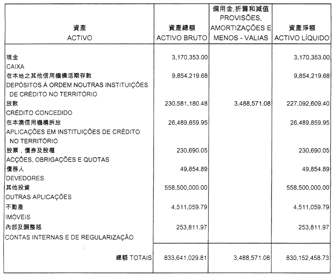 本行認為上述之財務報表均真實與公平地反映 貴局於一九九九年十二月三十一日之財政狀況及 貴局截至該日止年度之營運業績,並已按照為配合澳門金融體系制定之公定會計制度及根據於一九八五年三月三十日及一九九九年九月二十七日所頒佈的第24/85/M號及第50/99/M號法令內之 貴局規章而妥善編製。
