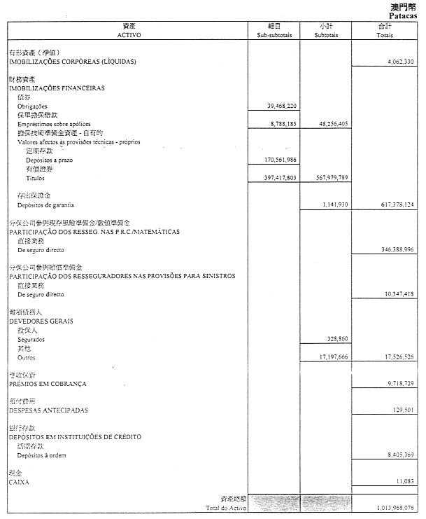 為更全面了解 貴保險公司——澳門分行的財務狀況及經營業績,隨附的賬目摘要應與經審核的賬目一併參閱。