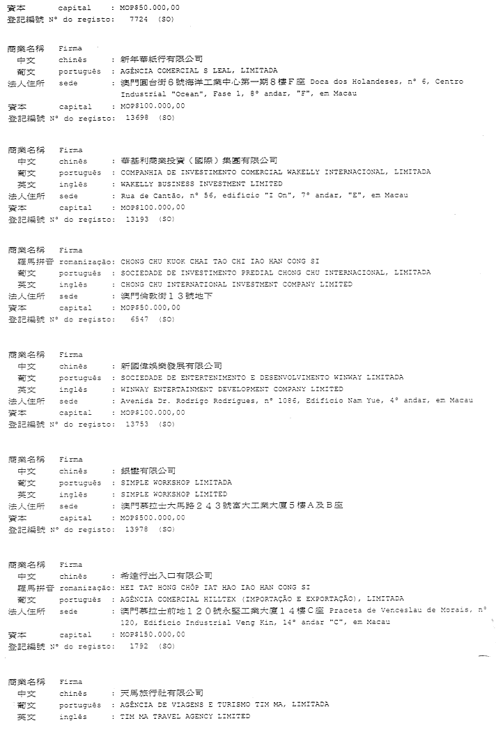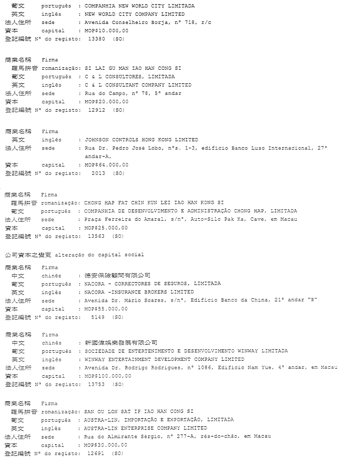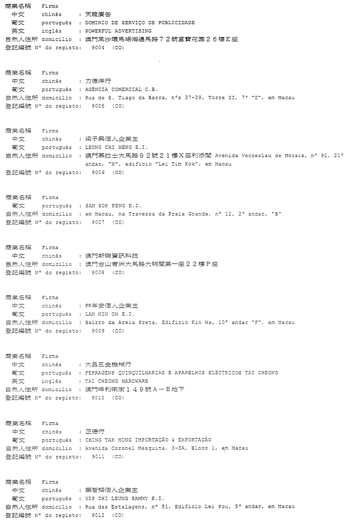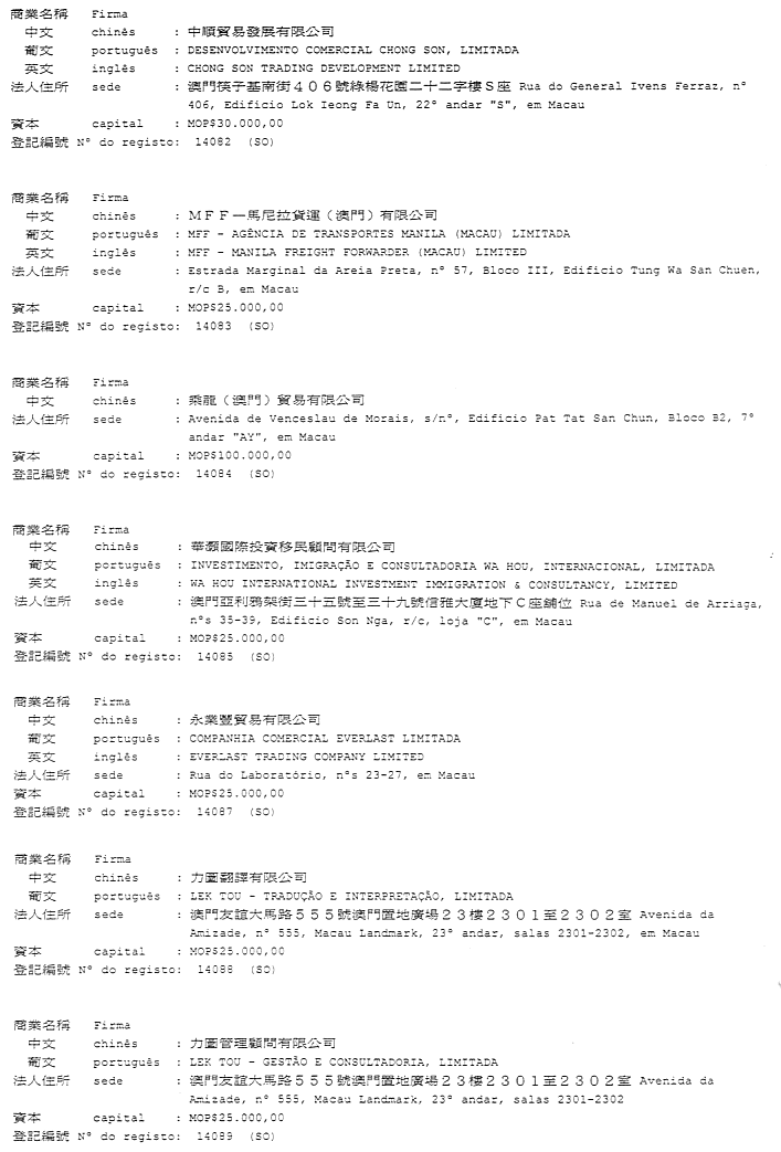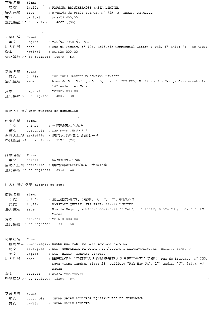 二零零零年十月五日於商業及汽車登記局——局長 盧瑞祥