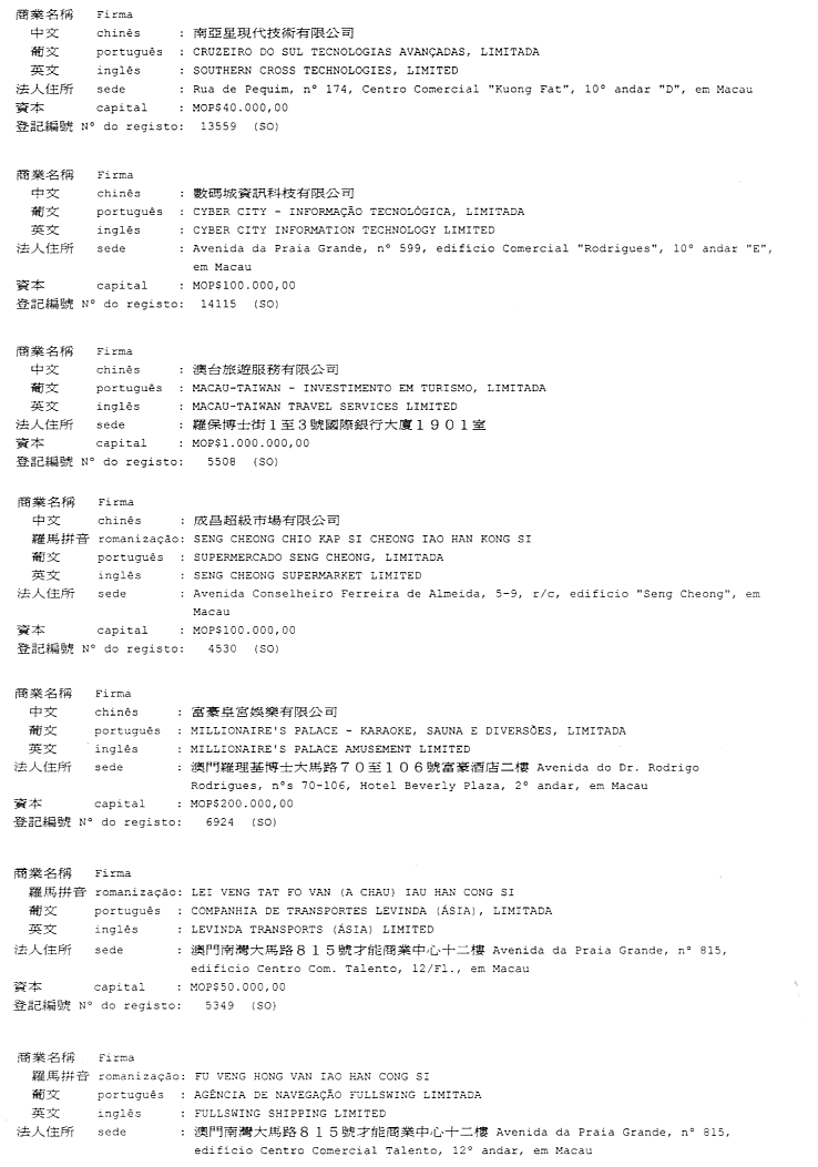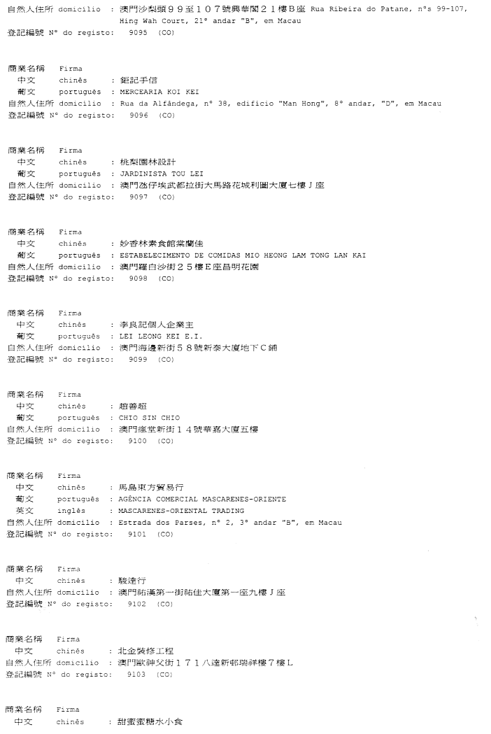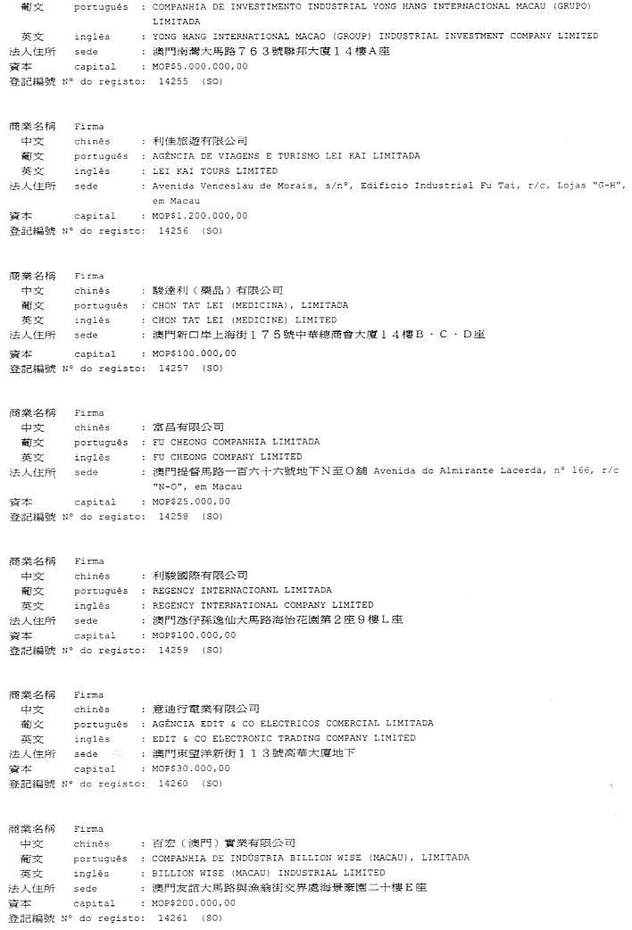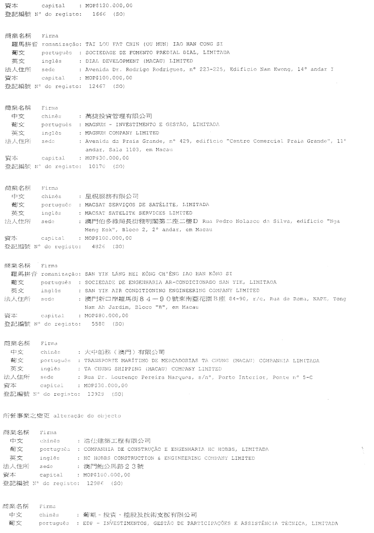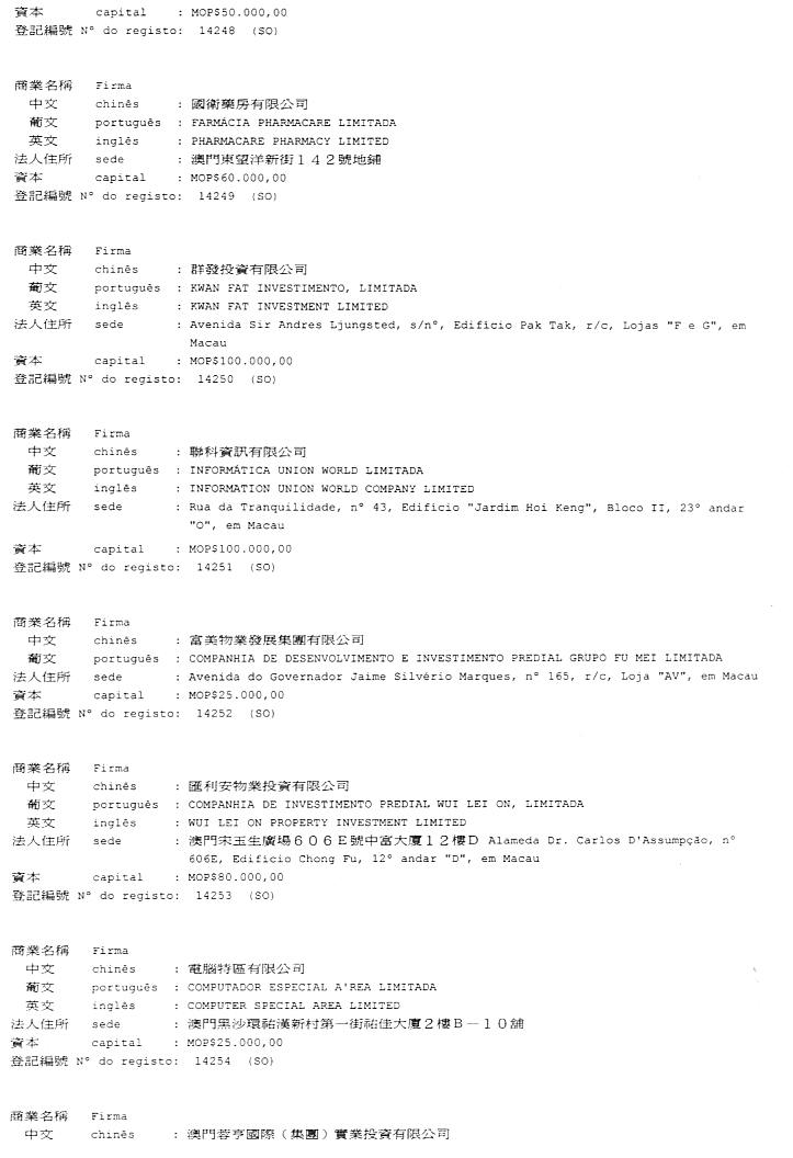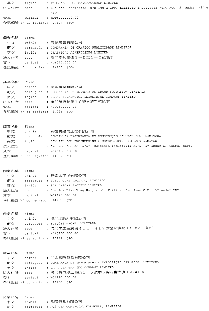 二零零一年一月四日於商業及汽車登記局——局長 盧瑞祥