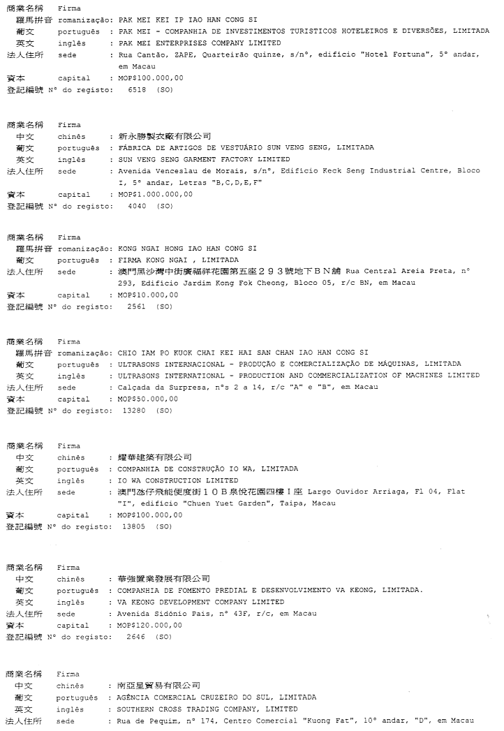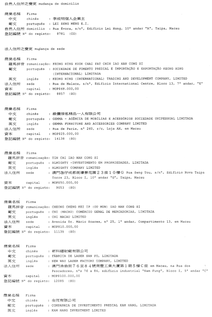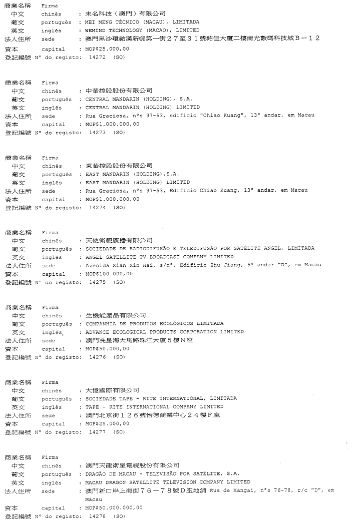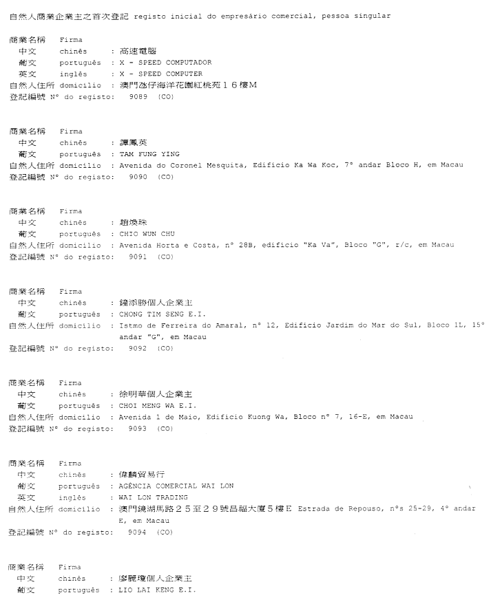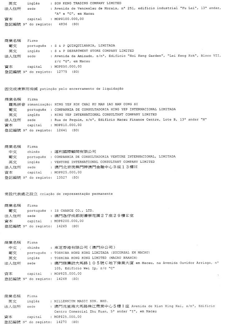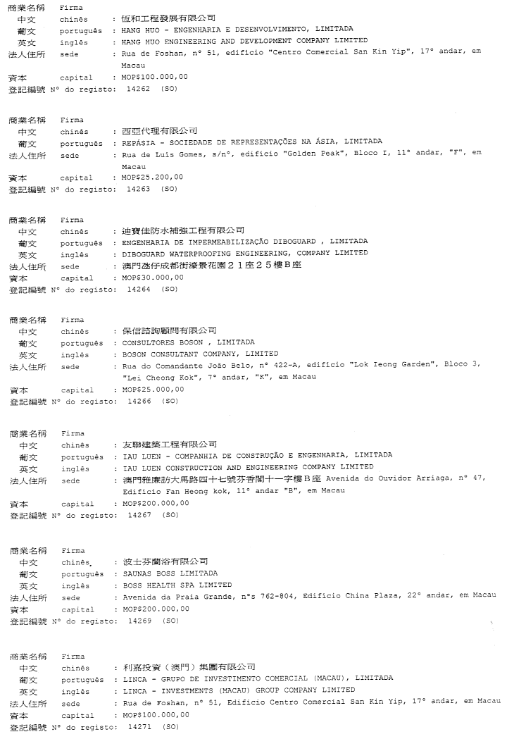 二零零一年一月四日於商業及汽車登記局——局長 盧瑞祥