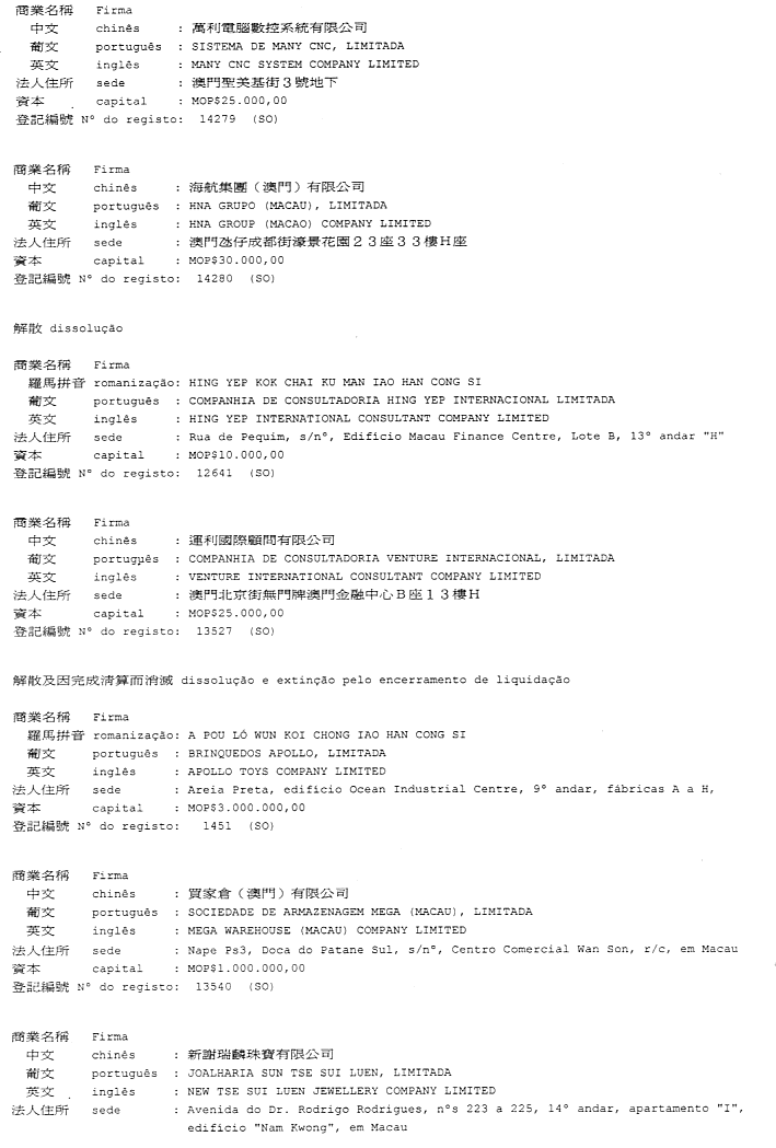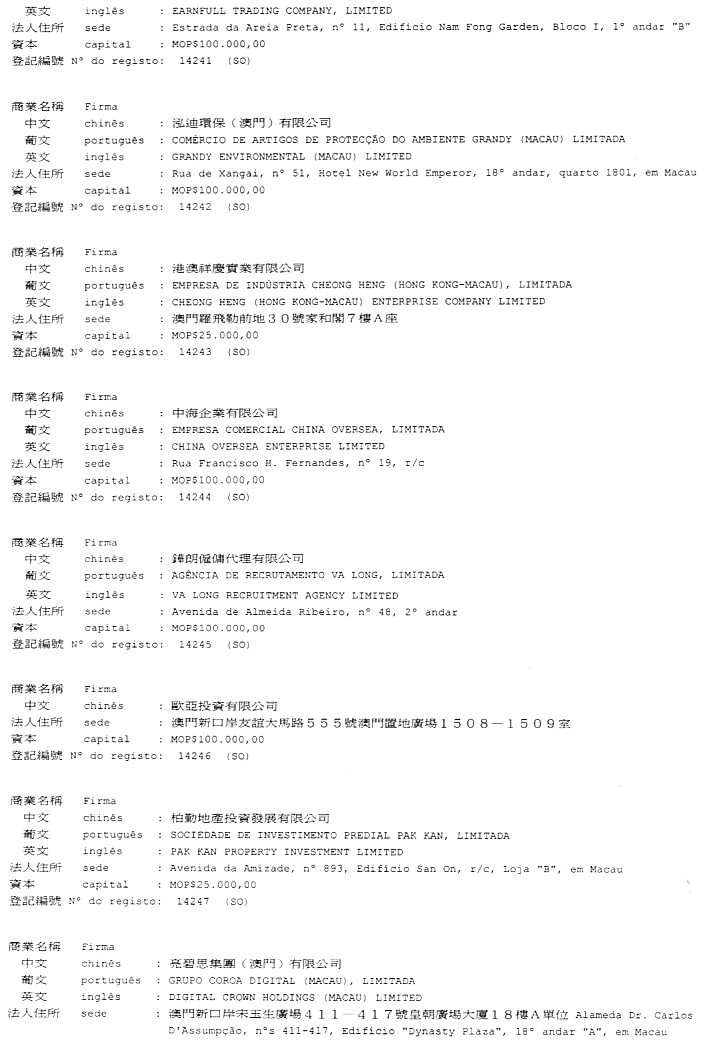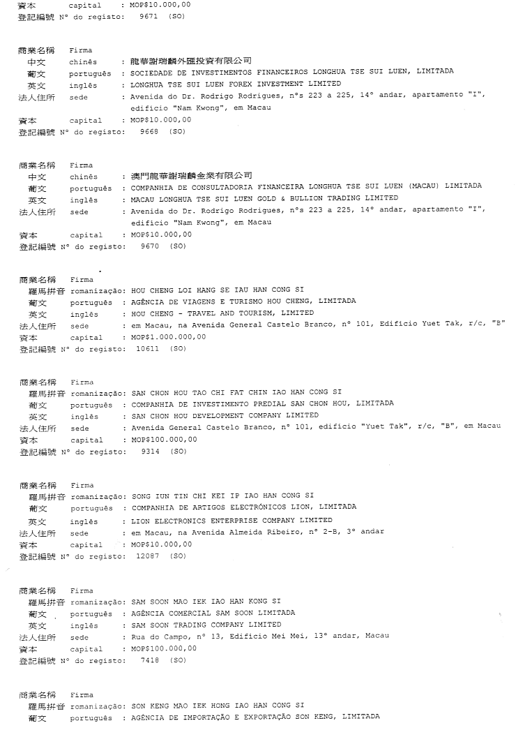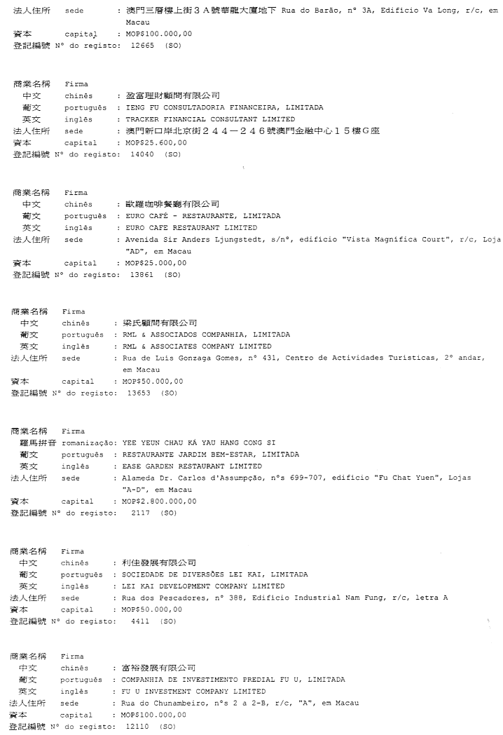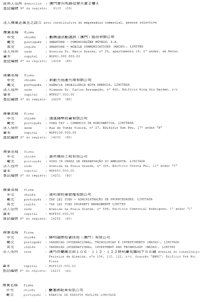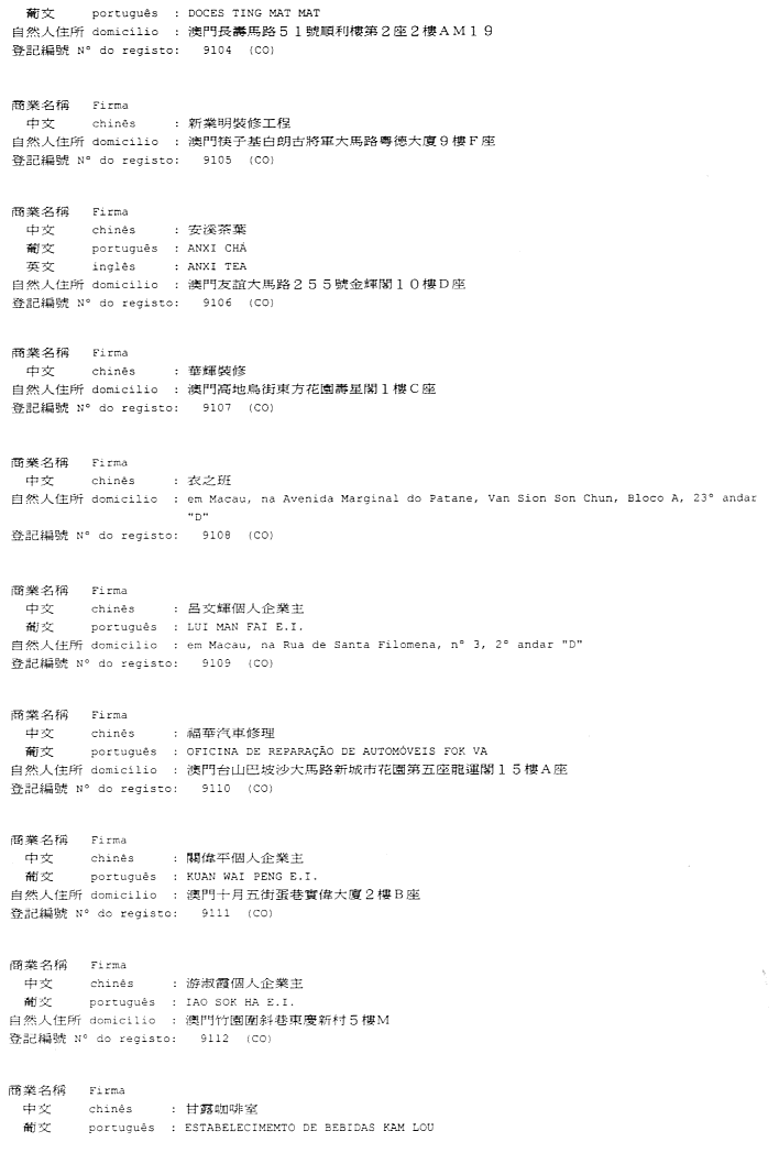 二零零一年一月四日於商業及汽車登記局——局長 盧瑞祥