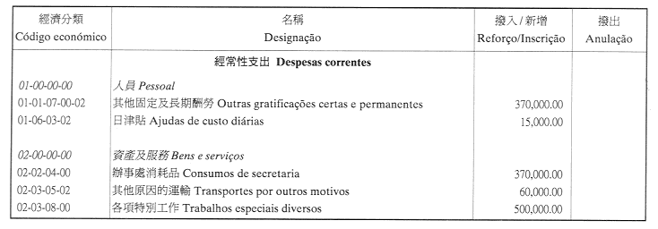 組織暨資訊部第三職階一等高級技術員Marília Gomes Coelho Coutinho學士及第三職階特級助理技術員Helena Maria Fernandes Rebelo dos Santos,薪俸分別為535及330點,皆自二零零一年十月一日起生效;