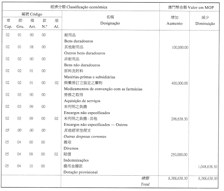 根據一九九三年九月二十七日第53/93/M號法令第十九條規定,茲公佈立法會執行委員會於二零零一年八月九日議決所批准的立法會二零零一年經濟年度本身預算之修改。