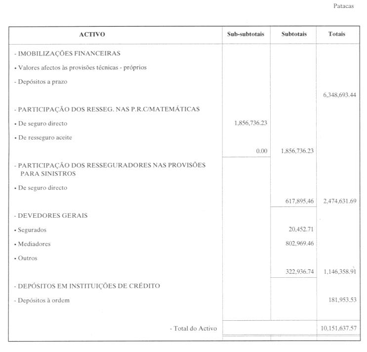Conforme parecer do nosso auditor, o referido relatório financeiro corresponde plenamente ao resultado dos lucros do exercício sobre o ano 2000 e aos prejuízos equacionados até dia 31 de Dezembro de 2000 da mencionada Sociedade.
